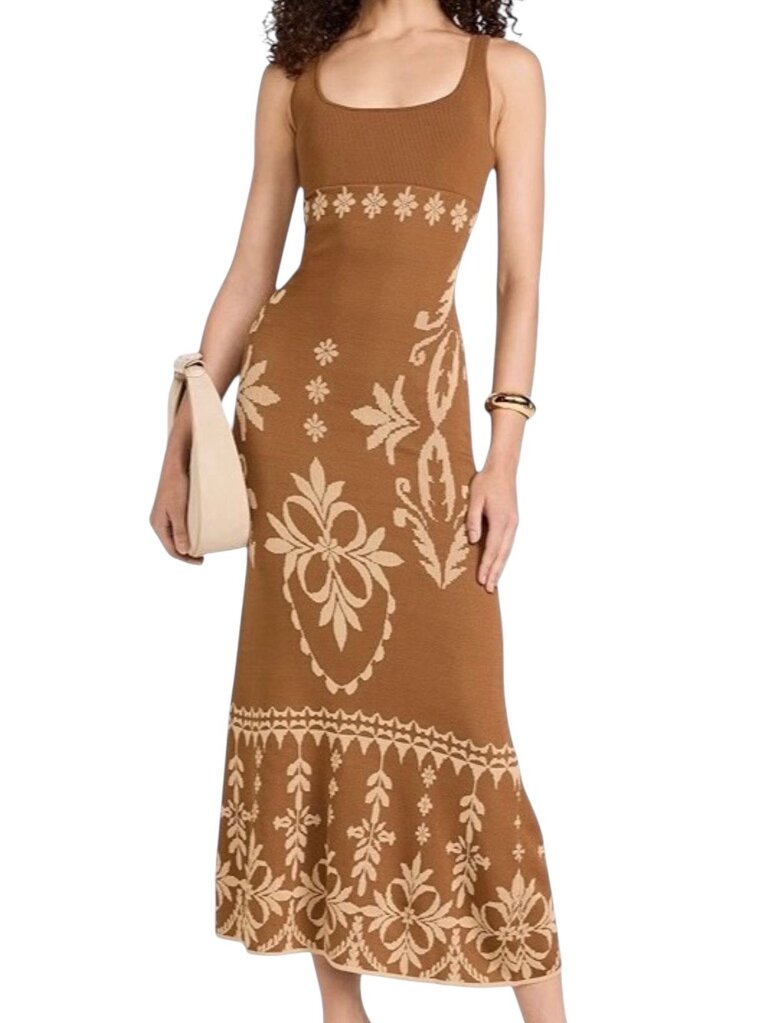 *MISA Kalil Knit Jacquard Sleeveless Scoop Neck Tank Midi Dress, Size M