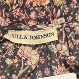 *Ulla Johnson Eleni Silk Metallic Clipdot Floral Ruffle Trim Balloon Sleeve Gathered Neck Top, Size 12