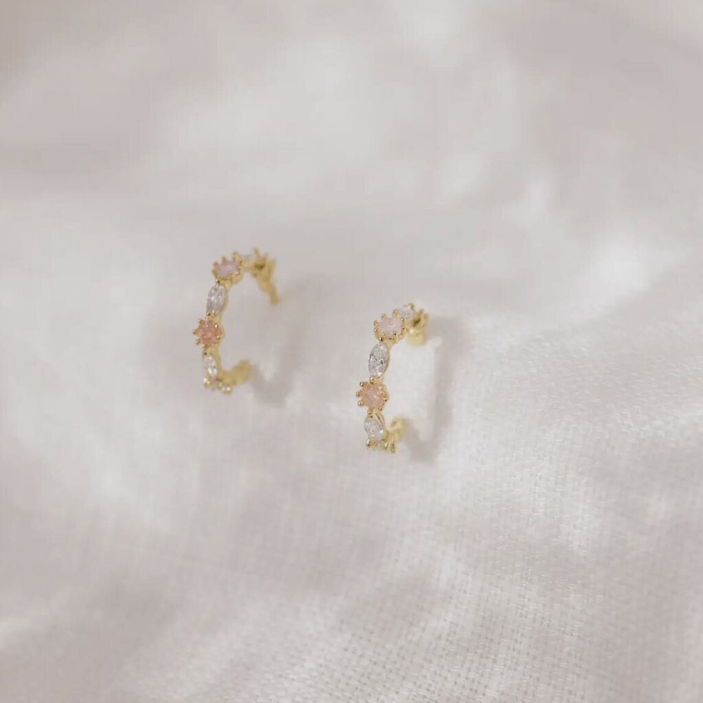 These little beauties feature a stunning mix of pink and white cubic zirconia stones in a floral design. They’re lightweight, comfortable, and easy to pair with everything.
