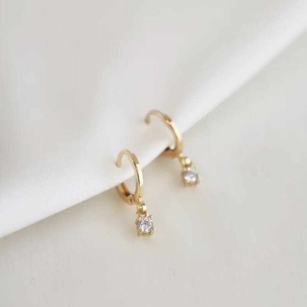 A simple huggie earring with a delicate round cubic zirconia drop.