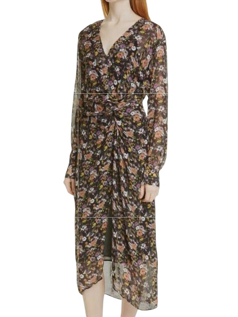 *Rag & Bone Amber Floral Long Sleeve V-Neck Twist Front Midi Dress, Size 4