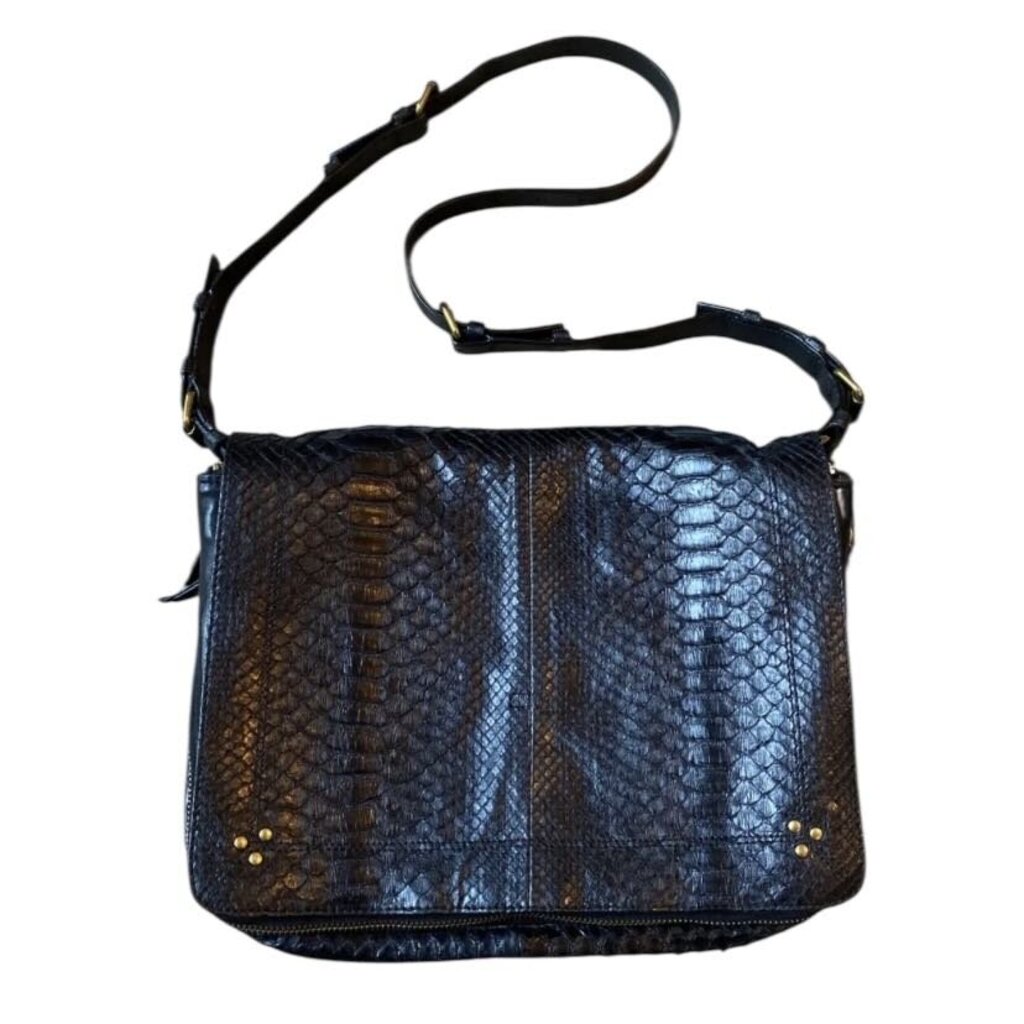 *Jerome Dreyfuss Albert Python Front Flap Dual Zipper Gussets Flap Front Messenger Crossbody Bag