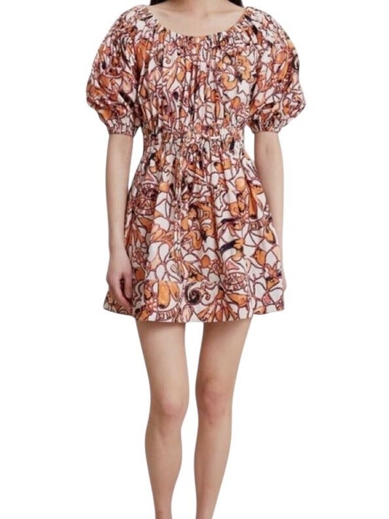 *A.L.C. Maya Cotton Floral Elbow Puff Sleeve Wide Neck Tie Waist Mini Dress, Size 2