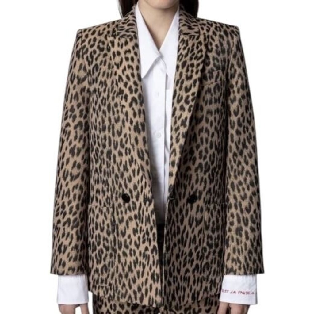 *Zadig & Voltaire Visko Jac Leopard Double Breasted Peak Lapel Split Cuff Blazer Jacket, Size FR 36=US 4