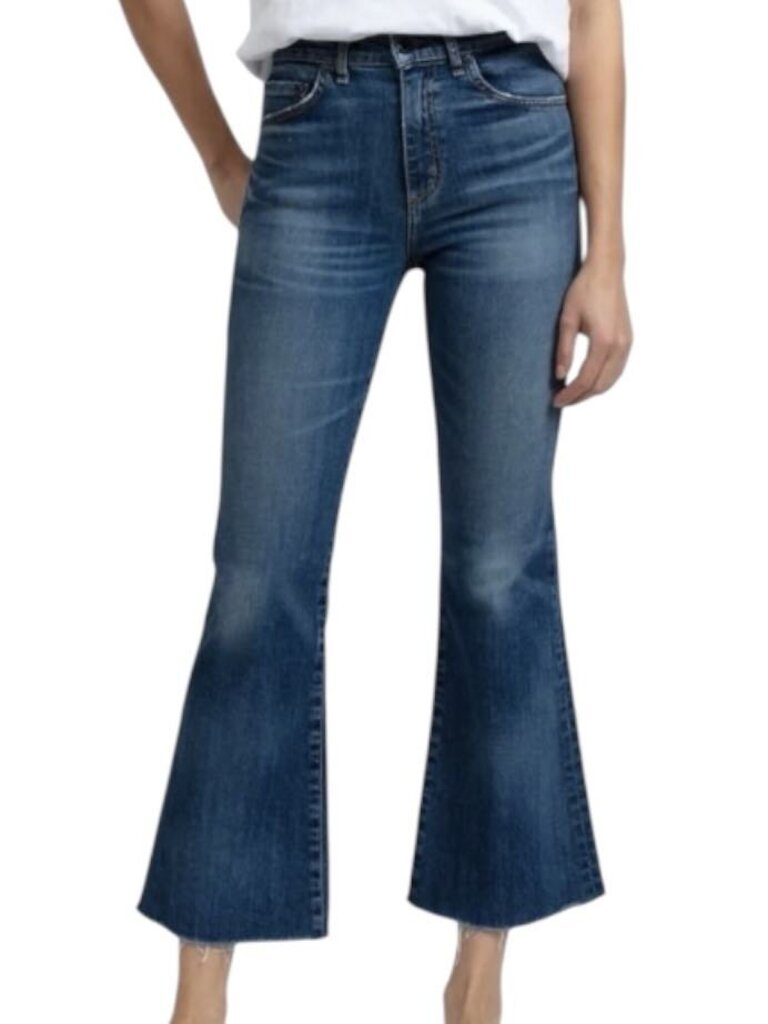 *ASKK NY Geek Auburn Stretch Denim High-Rise Flared Leg Cropped Raw Hem Jeans, Size 29(8)