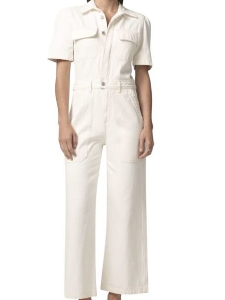 *Citizens of Humanity Miki Cotton Twill Stud Close Wide-Leg Utility Overall Jumpsuit, Size 6