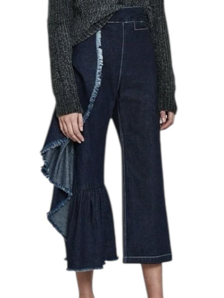 *Rachel Comey Revel Cotton Denim High Rise Wide Leg Asymmetrical Side Ruffle Cropped Pants, Size 2