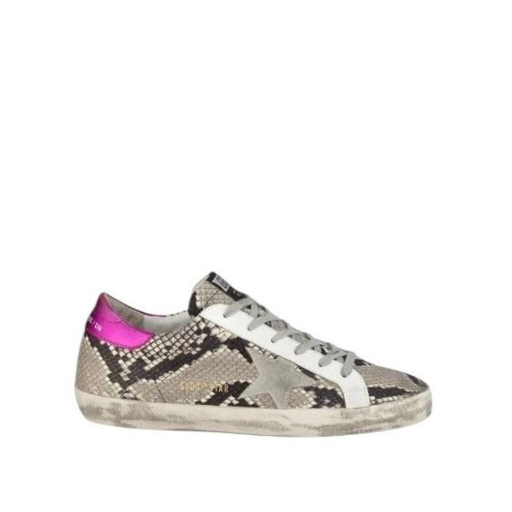 *Golden Goose Superstar Snake Leather Pink Heel Cap Suede Star Low-Top Sneakers, Size 37