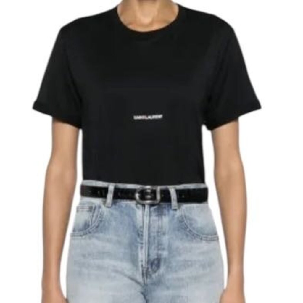 *Saint Laurent Cotton Jersey Small Printed Logo Short Sleeve Round Neck Tee Shirt Top, Size L