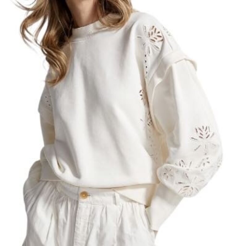 *Scotch & Soda Eyelet Broderie Anglaise Cotton Blend High Crew Pullover Sweatshirt, Size L