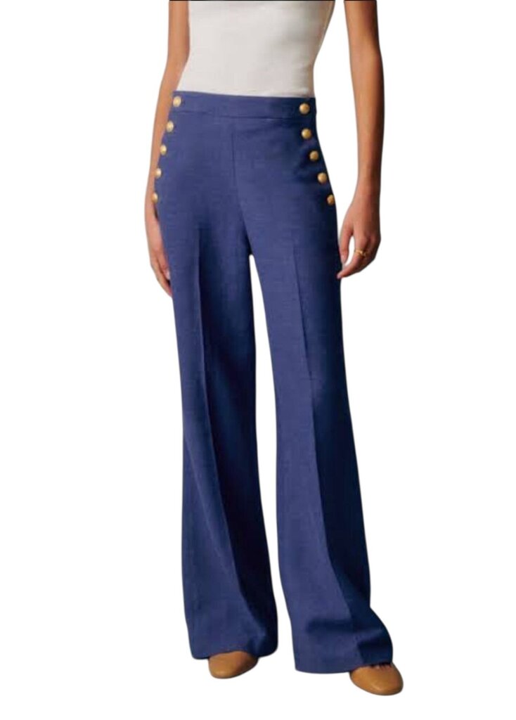 *Sezane Marino Wool Blend Twill High Rise Wide Leg Crested Button Sailor Pants, Size FR38=6